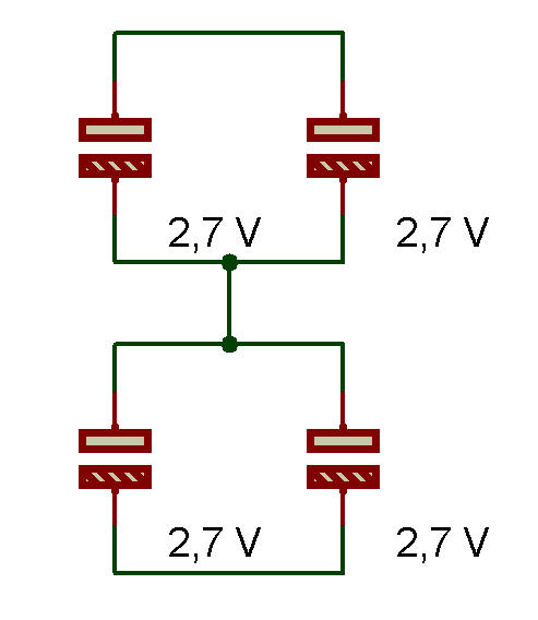 | 9 V | 4 S | 2,25 V | 2,5 F |