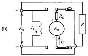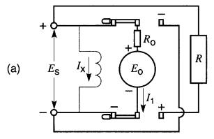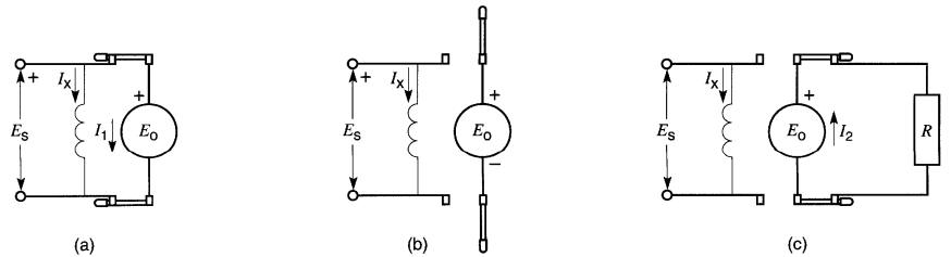 La tension résultante agissant sur le circuit valant (Es - Eo) volts, le courant I n'est limité que par la résistance Ro, ce qui donne: