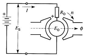 Considérons une machine bipolaire dont l'inducteur est un aimant permanent, et dont l'induit, de résistance Ro, est raccordé à une source de tension ES (Fig. 28-1).