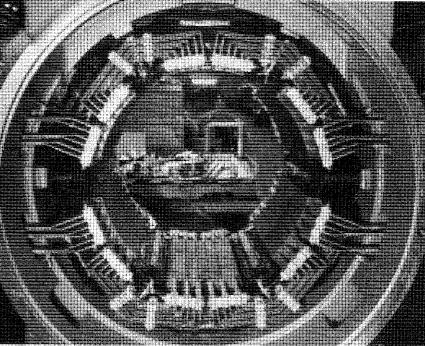 Figure 28-4a Noyau d'induit et collecteur d'un moteur de 225 kW, 250V, 1200 r/min. Le noyau de fer a un diamètre de 559 mm et une longueur de 235 mm ; il est composé de 400 tôles dentées de 0,56 mm.