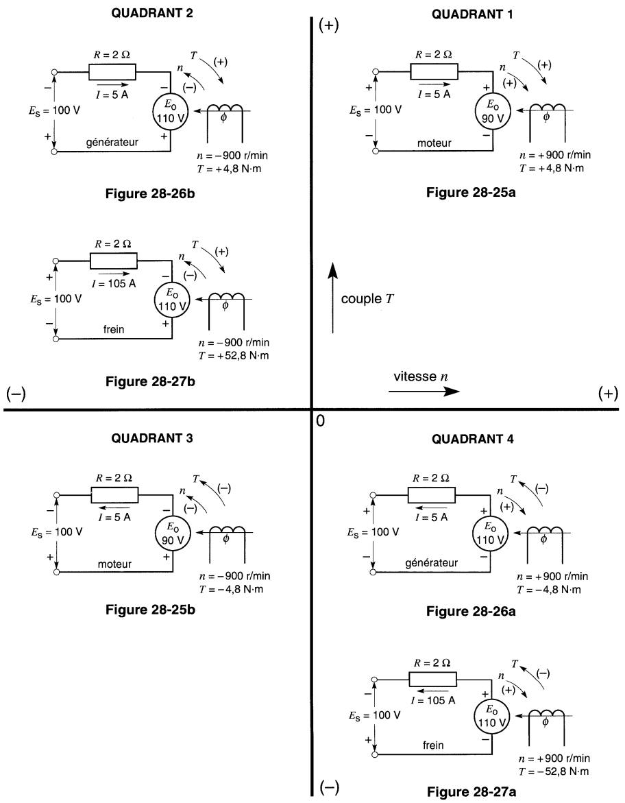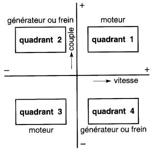 Son point d'opération peut alors se déplacer sur la caractéristique couple-vitesse et occuper successivement un des quatre quadrants délimités par les axes du couple et de la vitesse.