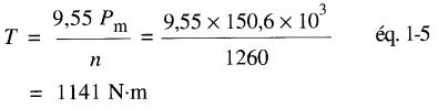où n est la vitesse de rotation en tours par minute et T le couple, en newton-mètre.