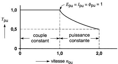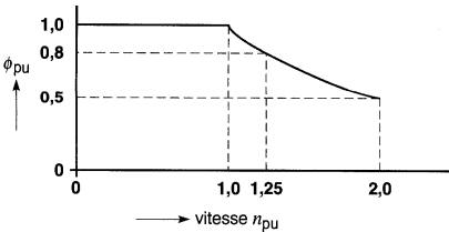 d) la puissance maximale du champ évaluée en pourcentage de la puissance du moteur, sachant que la tension d'excitation est de 200V