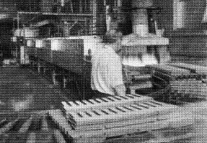 Figure 29-4 Four électrique de 150 kW utilisé pour recuire les tôles magnétiques après le poinçonnage des encoches. Cette opération, effectuée à 800 °C dans une atmosphère contrôlée, réduit sensiblement les pertes massiques du fer. On voit ici les tôles sortant du four