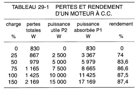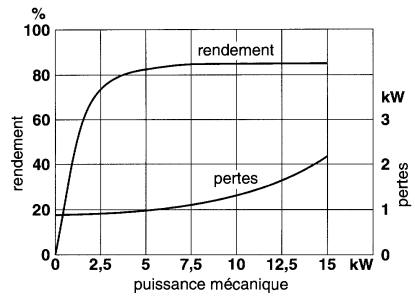 Figure 29-9 Rendement et pertes en fonction de la puissance mécanique développée