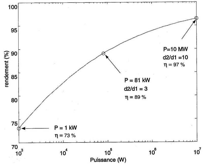 (2) à vitesse constante, le rendement d'une machine augmente rapidement avec sa puissance nominale