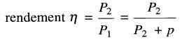 Nous avons déjà vu à la section Notions de mécanique et Thermodynamique que la transformation de l'énergie d'une forme en une autre au moyen d'une machine s'accompagne toujours d'une certaine perte de puissance. Cette perte se produit dans la machine elle-même et donne lieu: