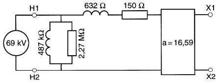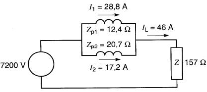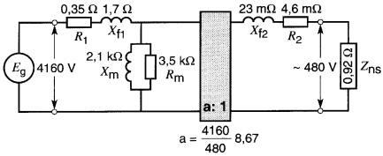 R1 = 18Ω R2 = 0,005Ω Xf1 = 40Ω Xf2 = 0.01Ω E1 = 14,4 kV E2 = 240 V