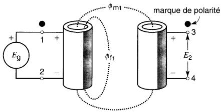 De plus, pour que les FMM s'opposent, il faut que Il entre par la marque de polarité du primaire lorsque I2 sort par la marque de polarité du secondaire (Fig. 30-8a).