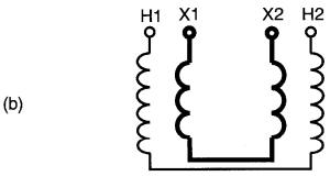 30-22 Dans la Fig. 30-36a, on applique une tension de 600 V aux bornes H1 H2 et l'on mesure une tension de 80 V entre les bornes X1 et X2.